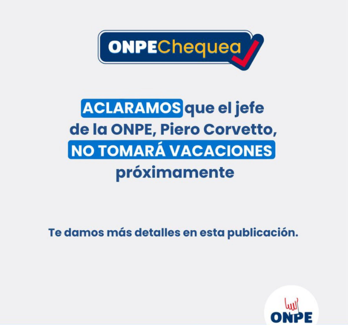 La Oficina Nacional de Procesos Electorales anuló el descanso vacacional programado para su jefe, Piero Corvetto, entre el 7 y 12 de mayo.